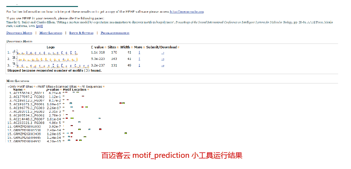 該步驟中的motif序列提取可調(diào)用部署于百邁客云的motif_prediction小工具來(lái)完成。