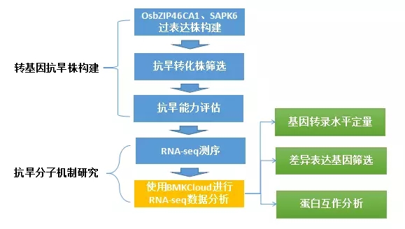植物抗旱研究的老師看過來了,近期華中農(nóng)業(yè)大學(xué)水稻研究團(tuán)隊(duì)成功構(gòu)建水稻雙基因轉(zhuǎn)化抗旱株,并借助百邁客云計(jì)算平臺(m.mirroron.cn)挖掘該抗旱株轉(zhuǎn)錄組測序數(shù)據(jù),完成對該新型水稻抗旱株抗旱機(jī)制初步探究。