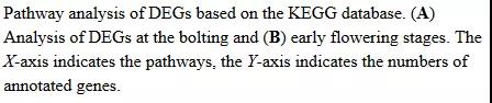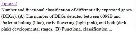 取樣方法:兩個(gè)品系的均取抽薹時(shí)期與花發(fā)育早期兩個(gè)時(shí)間點(diǎn)的分枝發(fā)生部位。每個(gè)品系每個(gè)時(shí)期1個(gè)樣本(每個(gè)個(gè)體至少取5個(gè)分枝發(fā)生部位,最多6個(gè)個(gè)體混樣樣本),總共4個(gè)樣本,每個(gè)樣本分別進(jìn)行mRNA測序與microRNA測序