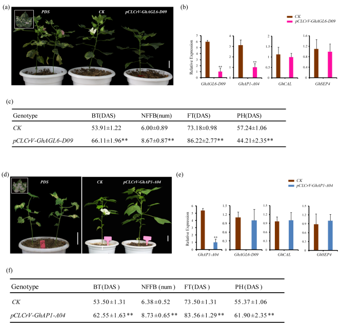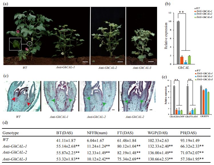 5、GhCAL在調(diào)節(jié)從營(yíng)養(yǎng)生長(zhǎng)到生殖生長(zhǎng)的轉(zhuǎn)換的功能驗(yàn)證