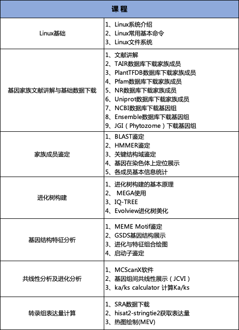 2、基因組類(lèi)課程:比較基因組學(xué)+基因家族分析課程(可組合:零基礎(chǔ)R語(yǔ)言繪圖+生信入門(mén)+GWAS+遺傳進(jìn)化+重測(cè)序分析課程)
